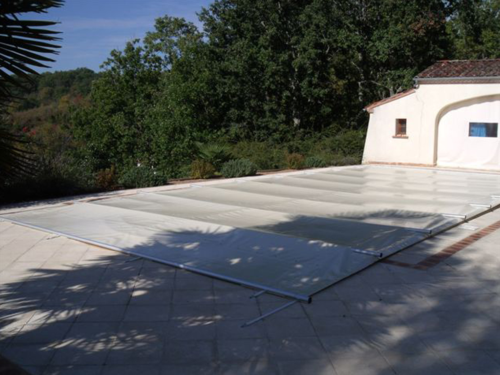 Une couverture à barres, adaptable à toutes les formes de piscines